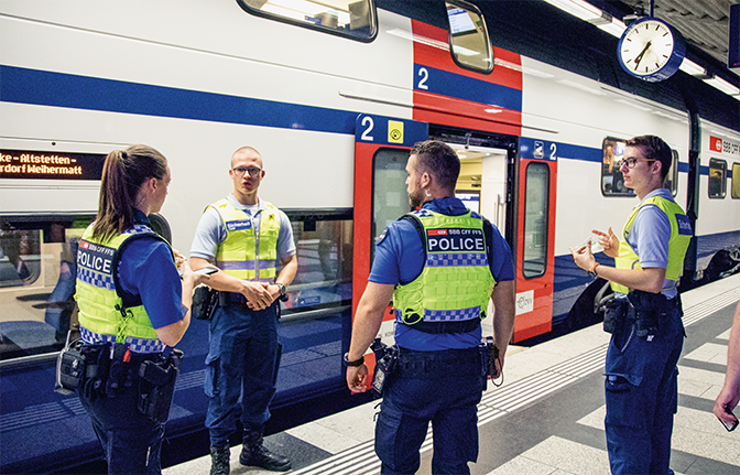 Hin und wieder sind in den öffentlichen Verkehrsmitteln Mitarbeitende mit gelben Leuchtwesten zu sehen. Steht «Police» auf der Weste, handelt es sich um die Transportpolizei. Ist «Sicherheit» zu lesen, handelt es sich um Personal des Sicherheitsdienstes. Gemeinsam sorgen sie rund um die Uhr für Ihre Sicherheit. Gut zu wissen: Im Nachtnetz werden alle S-Bahnen von Sicherheitspersonal begleitet.