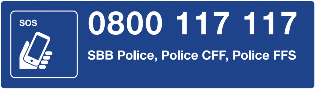 Im Falle einer Notsituation in der S-Bahn ist die Transportpolizei unter der Telefonnummer 0800 117 117 oder über die Notsprechanlage im Eingangsbereich erreichbar. Im Bus oder Tram kann man sich im Notfall ans Fahrpersonal wenden oder man alarmiert direkt die Polizei (117).