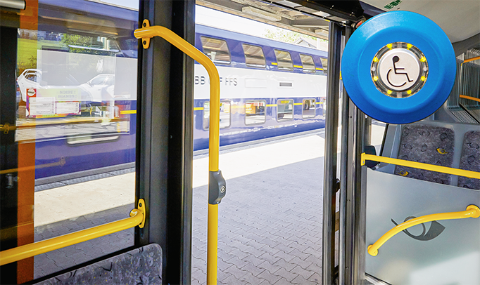 – Türen mit Rollstuhlsymbol bieten gute Festhaltemöglichkeiten und stufenfreie Sitzplätze.