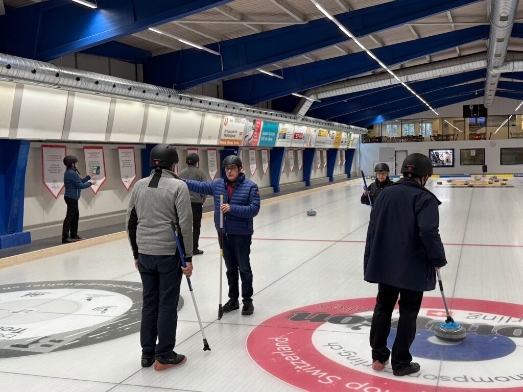 Die neue Disziplin «Curling mit Stick» bringt frischen Wind in die Curlinghalle Weihermatt Urdorf. Man nehme gut haftende Schuhe mit Anti-Rutsch-Sohle, Helm, einen Stick, 19.8 Kilo Granit und einen Besen – und schon kann man problemlos Curling spielen. Dieses Konzept macht Curling mit Stick zu einer inklusiven und risikoarmen Alternative. Curling mit Stick entstand in Kanada und begeistert durch einfache Technik und schnellen Einstieg. Die Abgabe- bewegung erfolgt aufrecht gehend mit dem Stick, sprich er Spielende bleibt beim Abspiel stehend, was die Sicherheit auf dem Eis verbessert. Auch schont diese Steinabgabe mit ergonomischen Stick Knie und Hüfte und ist besonders vorteilhaft für Personen mit Mobilitätseinschränkungen, da es die Gelenke weniger belastet. Zudem entfällt das Sliding delivery (Ausfallschritt) der klassischen Curlingsteinabgabe, was diese Sportart noch reizvoller. Das Curling mit Stick ist dem «normalen» Curling sehr ähnlich und man kann problemlos beide Abgabearten in einem Team kombinieren! Deshalb ist Curling ist eine großartige Sportart für wirklich alle Sportbegeisterten. «Curling mit Stick ist die perfekte Mischung aus Spaß und Sport.